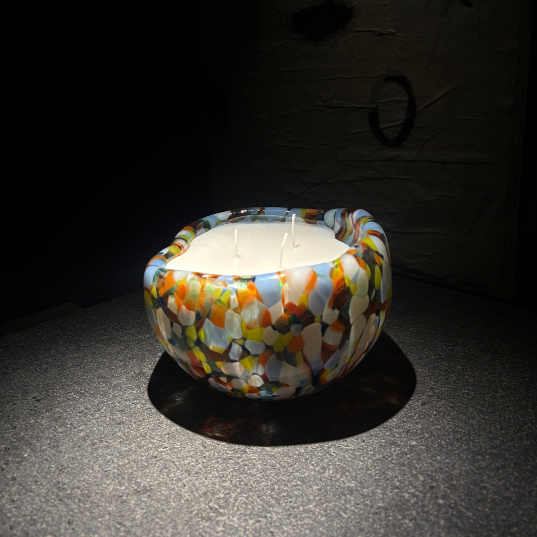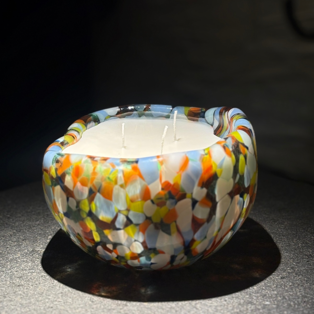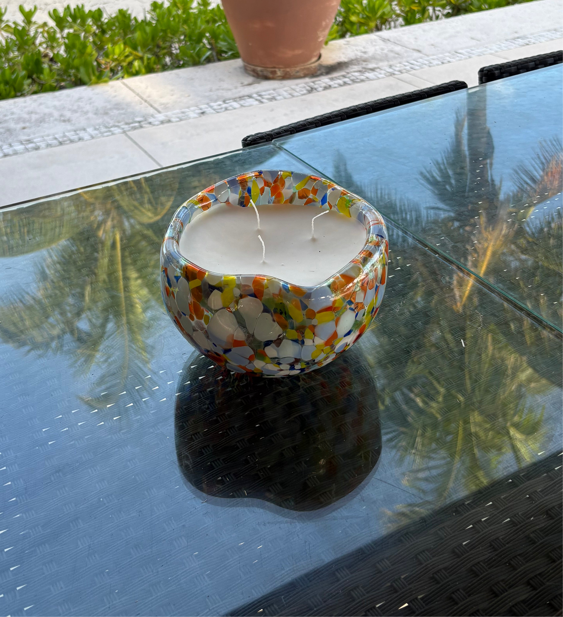Vela irregular de vidrio soplado hecha a mano por artesanos mexicanos.